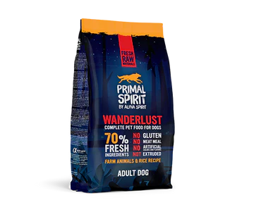 Wanderlust Primal Spirit es una alimentación para perros adultos basada en la experiencia de Alpha Spirit. Primal se caracteriza por incluir ingredientes frescos (70%), un elevado contenido en carne y pescado que se complementa con una cantidad moderada de arroz hidrolizado.